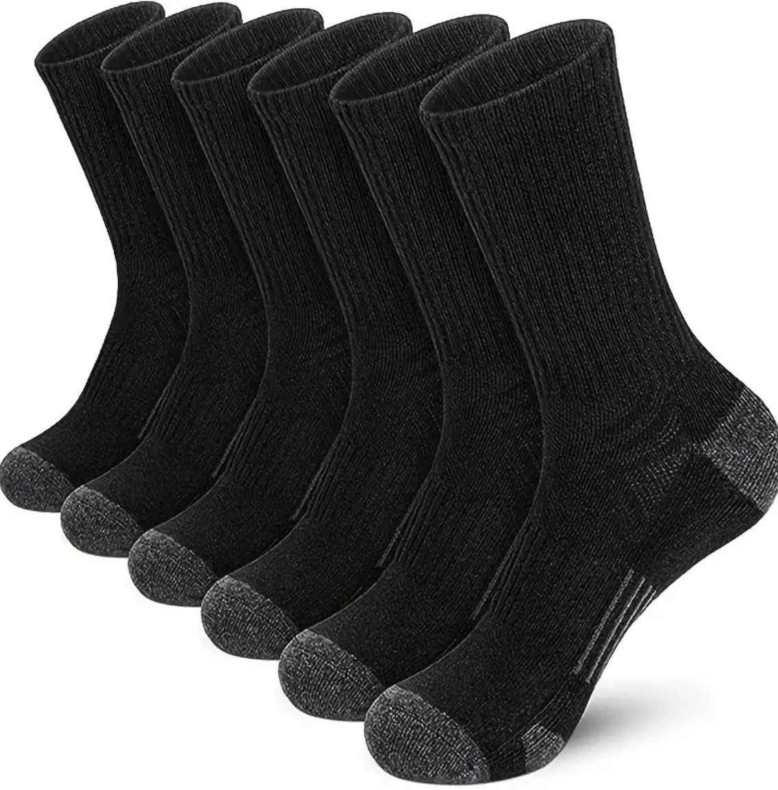 Breathable Solid Crew Socks for Men - Pack of 6 Pairs -Menswear, plain,comfy